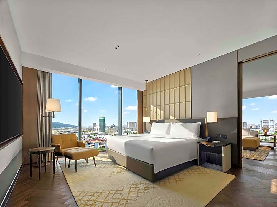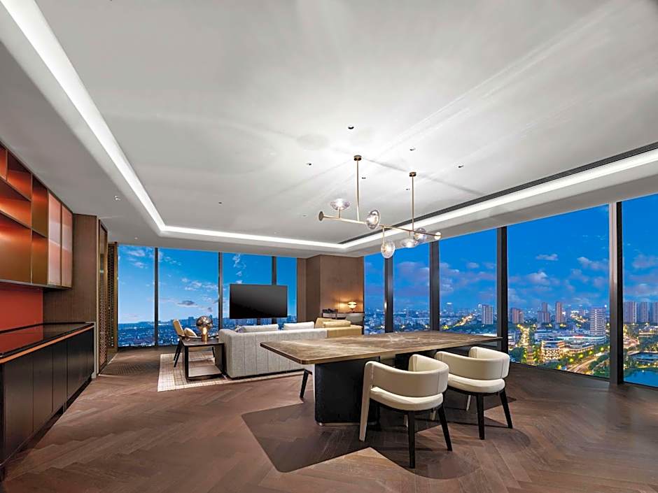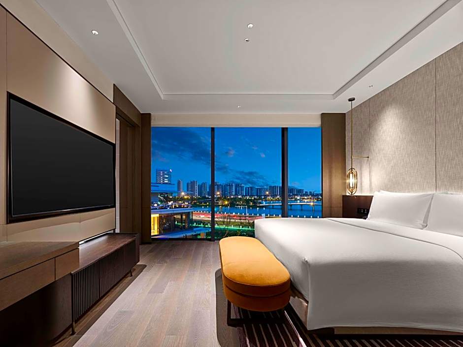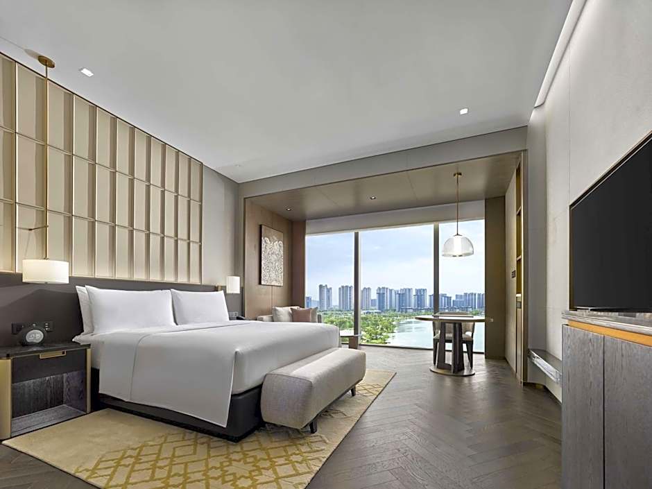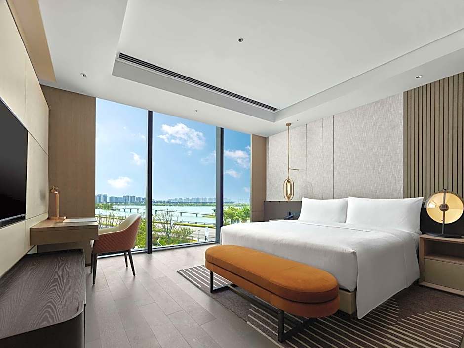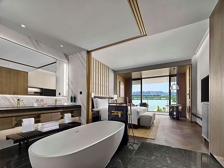 The suite's kitchenette, which features a refrigerator and a microwave, is available for cooking and storing food. The spacious air-conditioned suite provides a flat-screen TV with cable channels, a mini-bar, a tea and coffee maker, a seating area as well as lake views. The unit offers 1 bed.