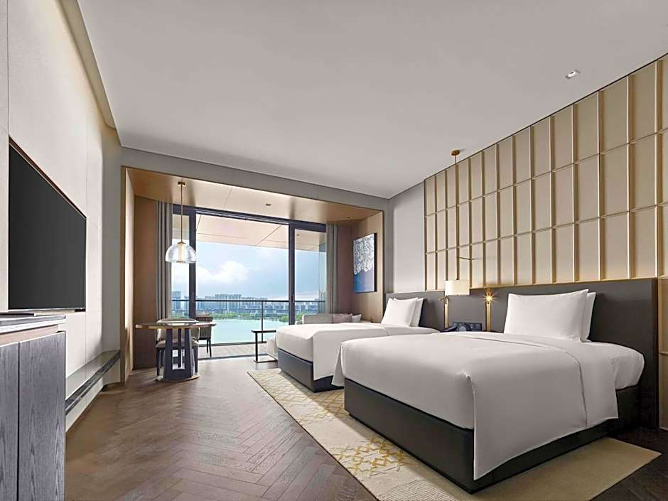 The suite's kitchenette, which features a refrigerator and a microwave, is available for cooking and storing food. The spacious air-conditioned suite provides a flat-screen TV with cable channels, a mini-bar, a tea and coffee maker, a seating area as well as lake views. The unit offers 2 beds.